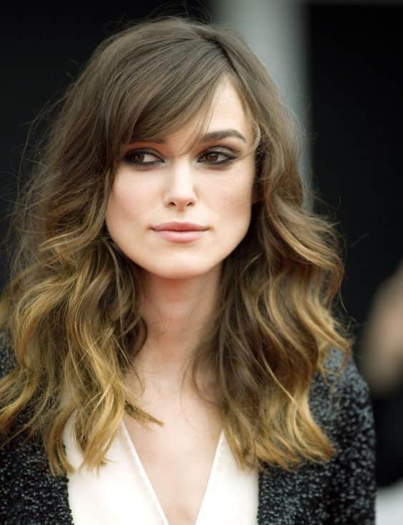 Cortes de pelo largo con flequillo largoEl flequillo largo es también una buena opción, si tienes facciones fuertes el flequillo largo puede ayudar a darle más armonia a tu rostro.