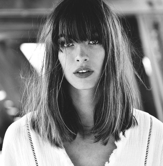 Cortes de pelo largo con flequillo rectoEl flequillo recto es perfecto para las caras largas y ovalas, ya que tiende a hacer que el rosto luzca un poco más corto dando simetria a toda la cara.